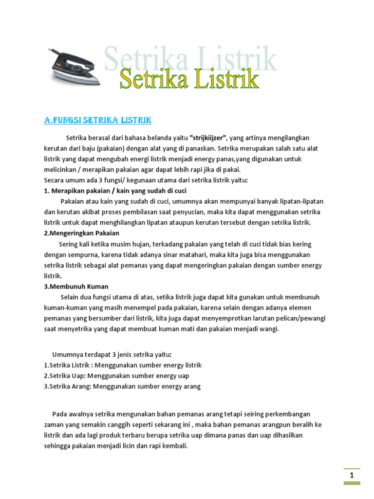 Fungsi Setrika Listrik Adalah
