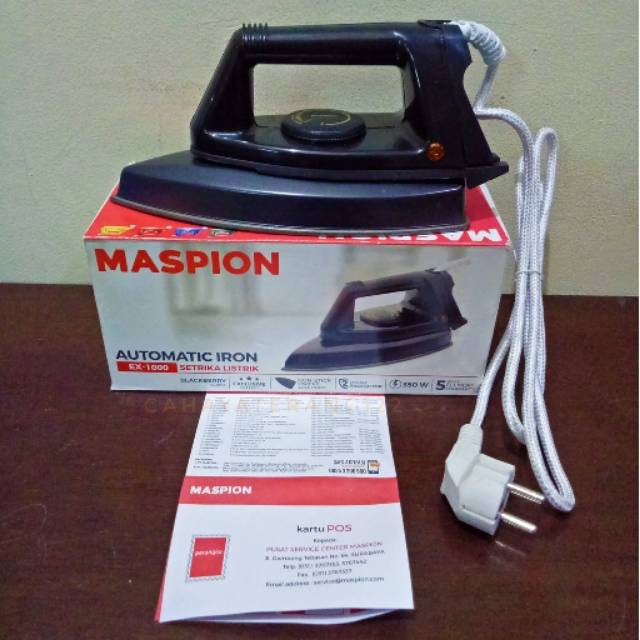 Harga maspion ex1000 setrika 350 watt jual maspion ex 1000 setrika 350 watt terjamin asli murah cicilan 0 dan gratis kirim hanya di jualelektronik com. Maspion merupakan sebuah perusahaan asal lokal yang telah banyak memperoduksi alat elektronik rumah tangga berkualitas. Desain setrika maspion ex 1000 setrika listrik 350 w berwarna hitam ini bagaikan senjata mutakhir saat berhadapan dengan segunung baju lecek. Beli setrika maspion murah di lazada co id.