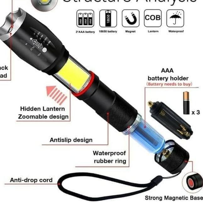 Dapat ditempel pada permukaan besi karena tail cap senter ini memiliki bahan magnet yang kuat. Senter ini juga dilengkapi fasilitas zoom in dan out dengan memutar bezel ring silver di kepala senter. Sekarang banyak tersedia senter police militer swat taktikal dengan berbagai fitur yang menguntungkan seperti pengaturan terang redup kedip sos zoom jarak jauh hingga 100 meter tabung corong pengatur lalu lintas lensa kuning anti kabut charger desktop charger ke listrik charger untuk mobil serta lengkap dengan sling tali gantungan. Beli baterai batere ex laptop 18650 real 2200mah powerbank senter swat bisa buat gantiin baterai powerbank yg rusak drop maupun senter.