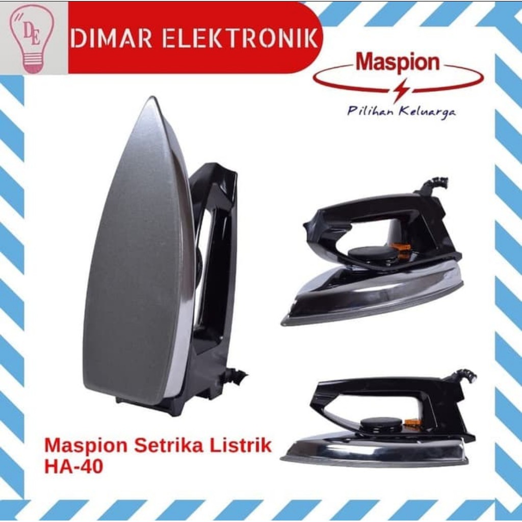 Setrika maspion ha 40 memiliki daya listrik yang rendah sehingga anda dapat mengontrol biaya bulanan anda lebih baik lagi. Desainnya yang unik dengan konsep retro dan bobot yang ringan memberikan kemudahan bagi anda saat menyetrika pakaian bahkan dalam jumlah banyak sekalipun dengan setrika harga murah ini anda tidak akan. Harga maspion ha40 setrika hitam jual maspion ha 40 setrika hitam terjamin asli murah cicilan 0 dan gratis kirim hanya di jualelektronik com. Selain setrika maspion anda juga bisa membeli peralatan.