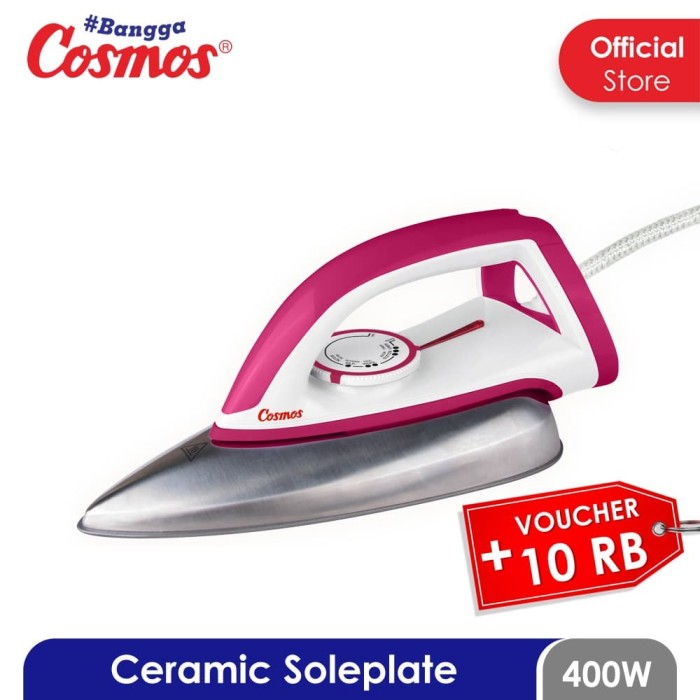 Cosmos dry iron cis438. Alas setrika ini juga tidak lengket pada pakaian sehingga sangat aman untuk semua jenis bahan pakaian. Terdapat kontrol temperatur otomatis serta kabel yang lentur lebih panjang sehingga memudahkan dalam menyetrika. Cosmos cis 418 merupakan sebuah setrika pakaian jenis dry iron dari cosmos yang dapat merapikan pakaian kusut dengan lebih cepat dan lebih muah.
