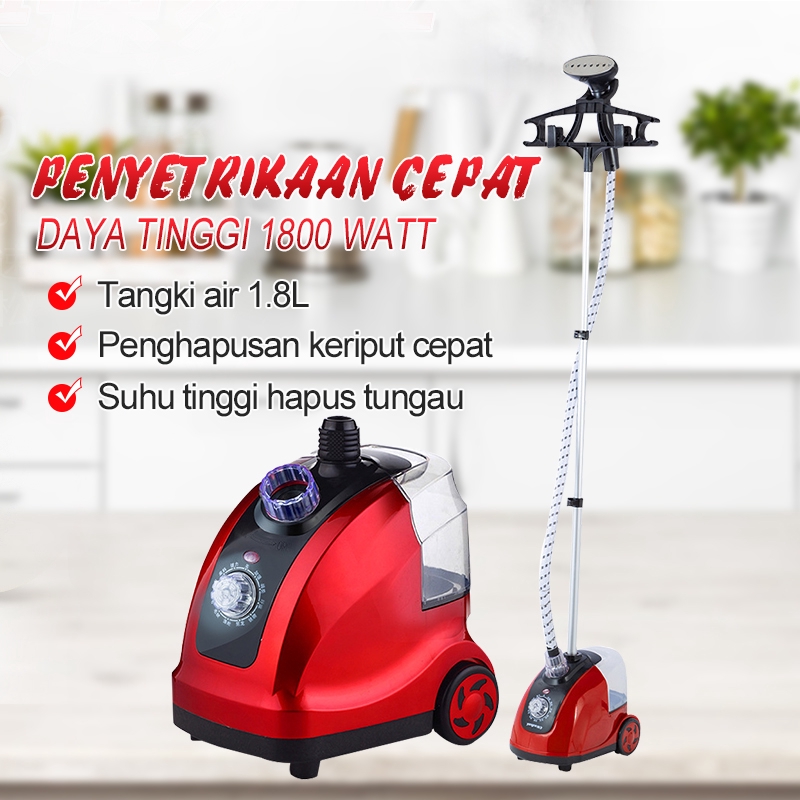 Setrika uap untuk baju yang digantung. Semburan uap vertikal untuk menghilangkan kusut dari kain yang tergantung. Bahkan catok lebih efektif untuk merapikan bagian baju yang sulit dijangkau. Membahas setrika uap gantung dari namanya kita sudah bisa membayangkan fungsi dari setrika uap gantung itu sendiri. Alat ini memberikan tekanan uap yang terus menerus hingga 35 gr per menit sehingga mudah menghaluskan baju bahkan dalam kondisi tergantung sekalipun hanya dalam waktu 90 detik.