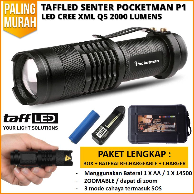 Senter led professional taffled senter led 2000 lumens waterproof pocketman p1 harga rp 17 700 dikirim dari dki jakarta. Belanja taffled senter led 2000 lumens waterproof pocketman p1. Taffled senter led 2000 lumens waterproof pocketman p1 termurah. Senter led ini juga tahan dari air sehingga anda tidak perlu khawatir terkena hujan ataupun tersiram air ketika menggunakan.